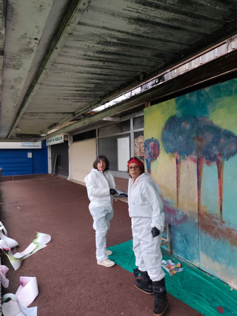 Pour la période de Noël, quatre membres du cours de peinture du mardi soir ont répondu à la sollicitation de l’association des commerçants du Centre commercial du Moulin à Chennevières-sur-Marne.