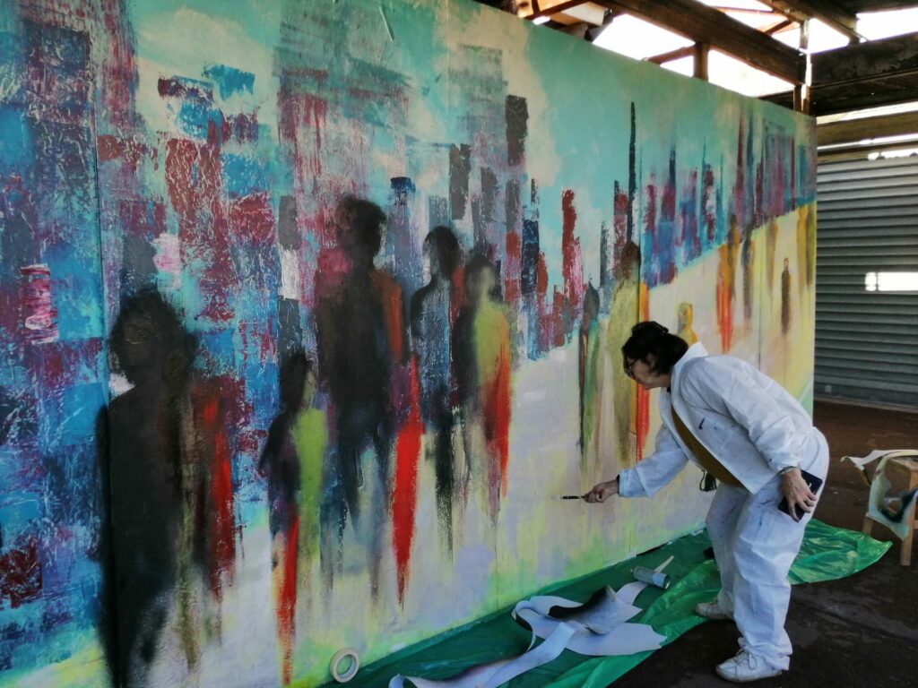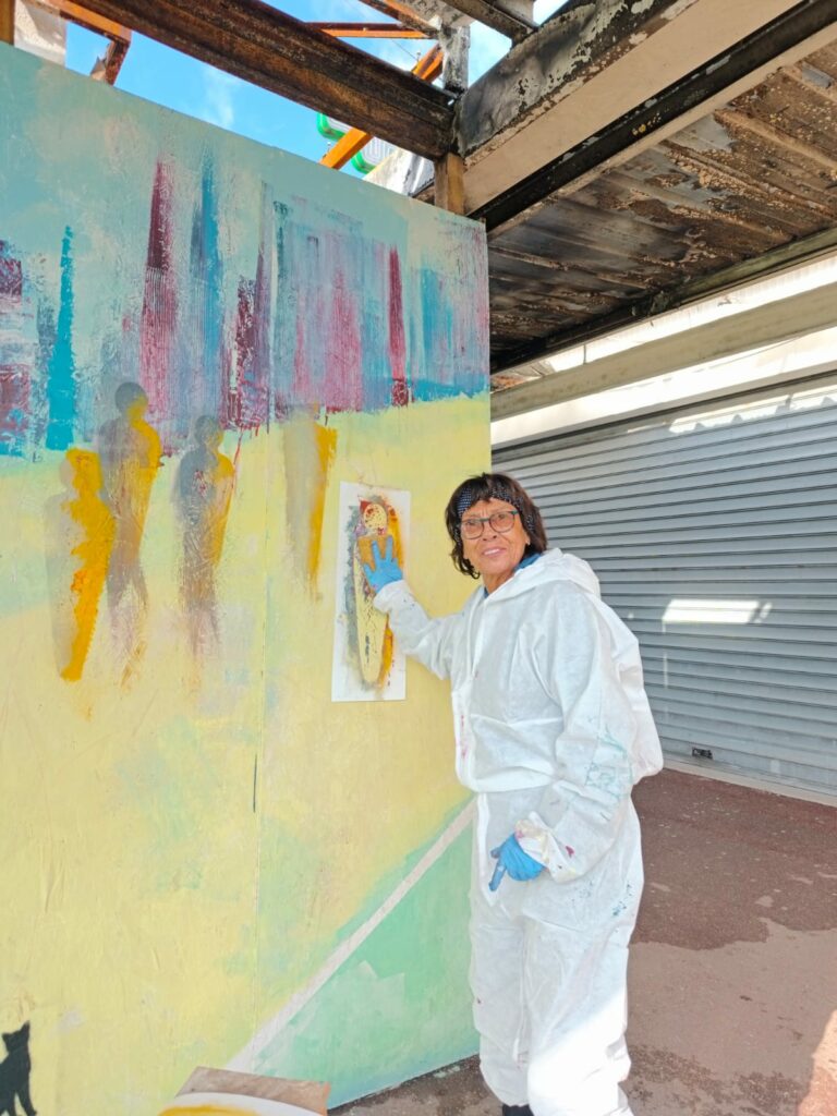 Pendant plusieurs heures, chacune a apporté sa touche personnelle — motifs, textures, nuances — pour composer une œuvre collective lumineuse et dynamique. Cette création transforme désormais un espace temporairement dégradé en un lieu plus joyeux et agréable pour les visiteurs du centre.